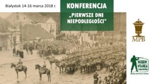 Muzeum Podlaskie w Białymstoku i Muzeum Wojska w Białymstoku zapraszają na konferencję naukową pt. „Pierwsze dni niepodległości”, która odbędzie się 14–16 marca 2018 r. w Białymstoku.