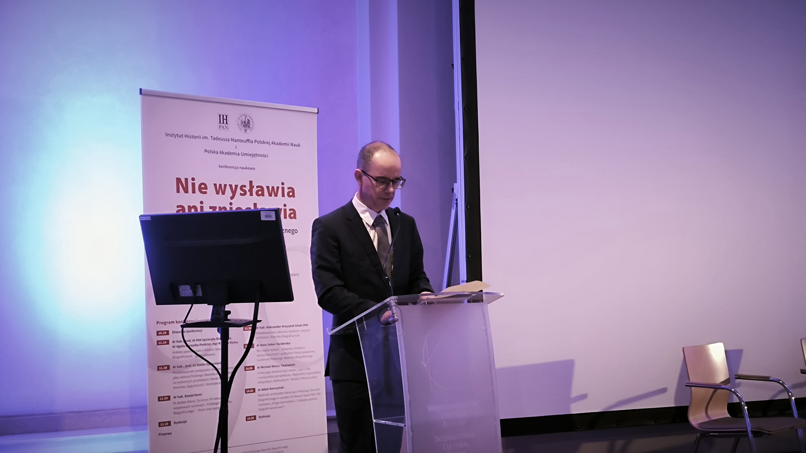 Po przerwie kawowej, drugą cześć konferencji prowadził prof. dr hab. Stanisław Sroka. Usłyszeliśmy wtedy wystąpienia kolejnych naszych autorów: dr. hab. Aleksandra Krzysztofa Sitnika OFM („Przedstawiciele zakonów męskich i żeńskich w Polskim Słowniku Biograficznym”), dr Anny Sobór Świderskiej („Bez osądu historii – biogramy działaczy komunistycznych i polityków Polski powojennej na łamach Polskiego Słownika Biograficznego”) oraz dr. Michaela Morysa-Twarowskiego („A imię jego powinno być milion, czyli o PSB z cieszyńskiej perspektywy. Regionalny imposybilizm, wikipedyjny dyletantyzm i Wielkie PSB przyszłości”). Na koniec dyrektor Archiwum Nauki PAN i PAU w Krakowie dr Adam Korczyński przedstawił krótką informację „Materiały archiwalne dotyczące Polskiego Słownika Biograficznego w zasobie Archiwum Nauki PAN i PAU”.