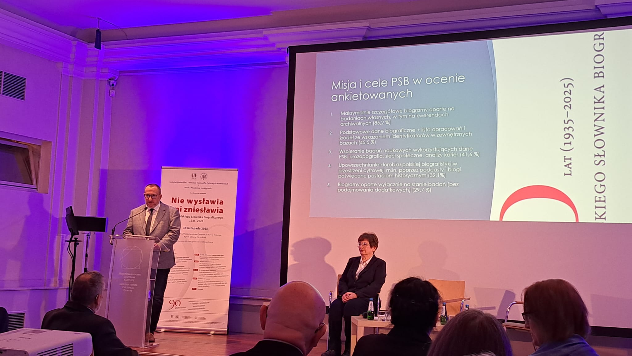 19 listopada 2025 r. odbyła się w Międzynarodowym Centrum Kultury w Krakowie konferencja „Nie wysławia ani zniesławia. 90 lat Polskiego Słownika Biograficznego 1935–2025″. Uczestniczyło w niej ponad sto osób, zgromadzonych zarówno na miejscu, jak i obserwujących wydarzenie przez streaming.