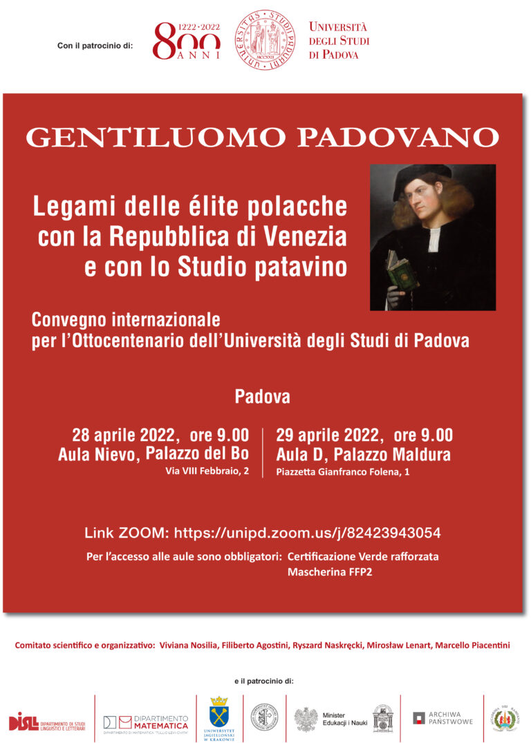 Zaproszenie do udziału w konferencji „Gentiluomo padovano. Legami delle élite polacche con la Repubblica di Venezia e con lo Studio patavino”