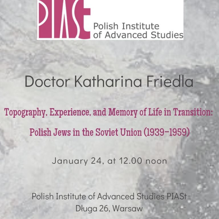 Zaproszenie na wykład „Topography, Experience, and Memory of Life in Transition: Polish Jews in the Soviet Union (1939–1959)”